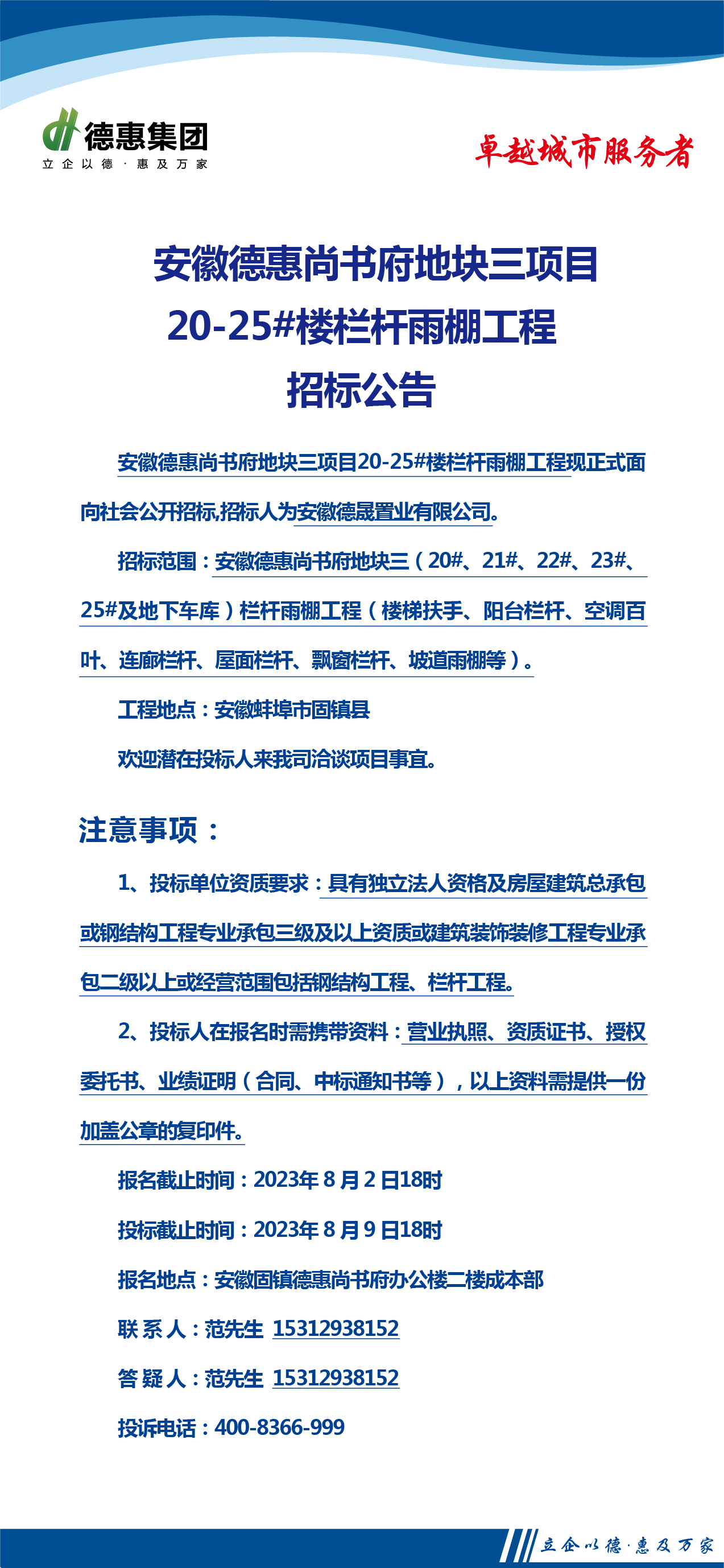 安徽固镇德惠·尚书府地块三(20-25#楼区域)栏杆雨棚工程