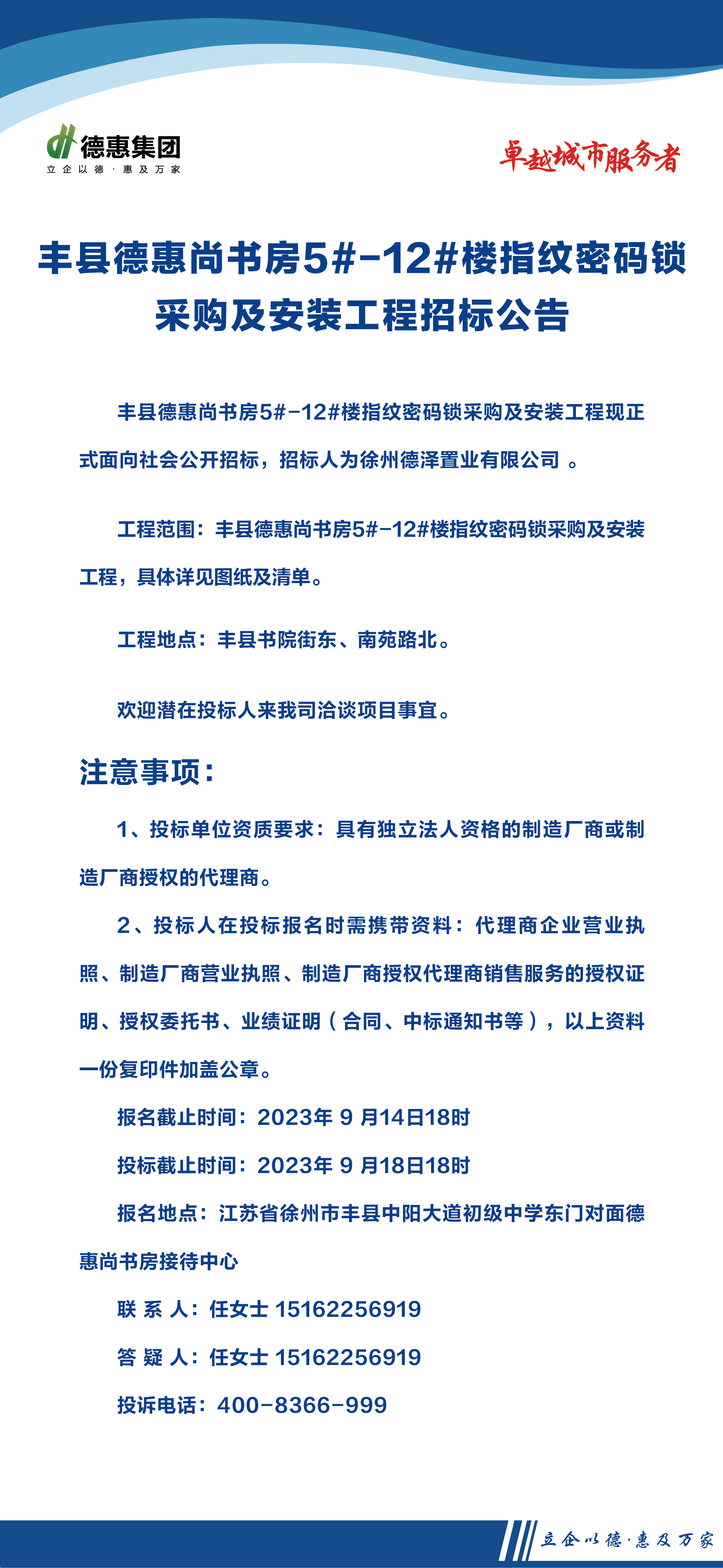 丰县德惠尚书房5#-12#楼指纹密码锁采购及安装工程