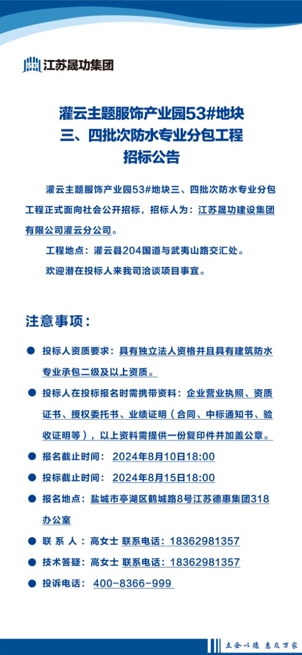灌云主题服饰产业园53#地块三、四批次防水专业分包工程