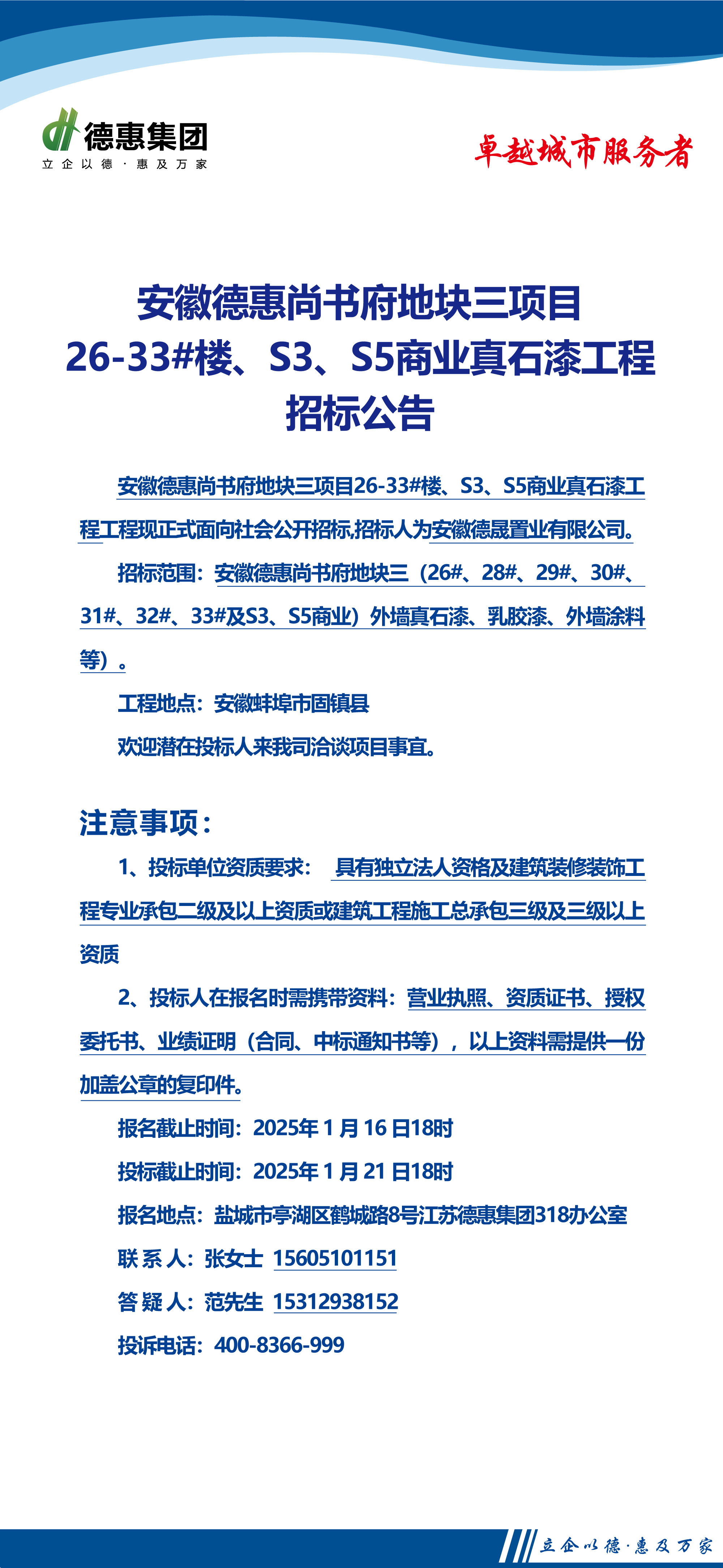 安徽德惠尚书府地块三项目26-33#楼、S3、S5商业外墙真石漆工程