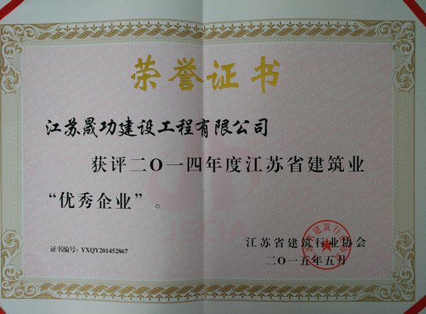 2015年7月19日,晟功集团获评“二〇一四年度省建筑业优秀企业”! |