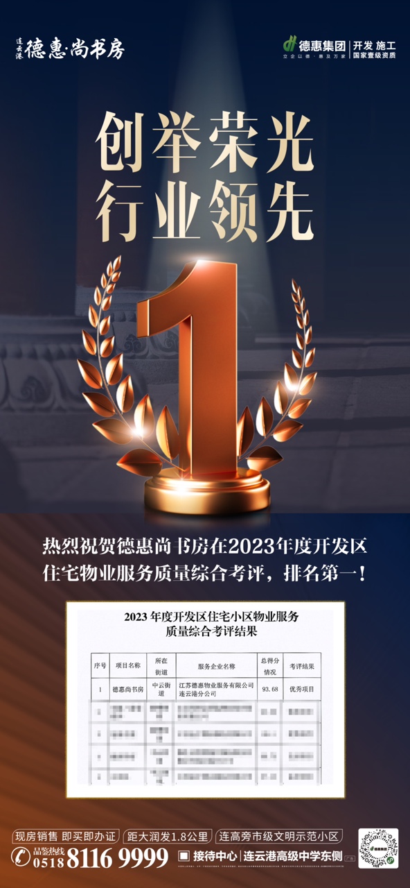 热烈祝贺德惠尚书房在2023年度开发区住宅物业服务质量综合考评,排名第一!