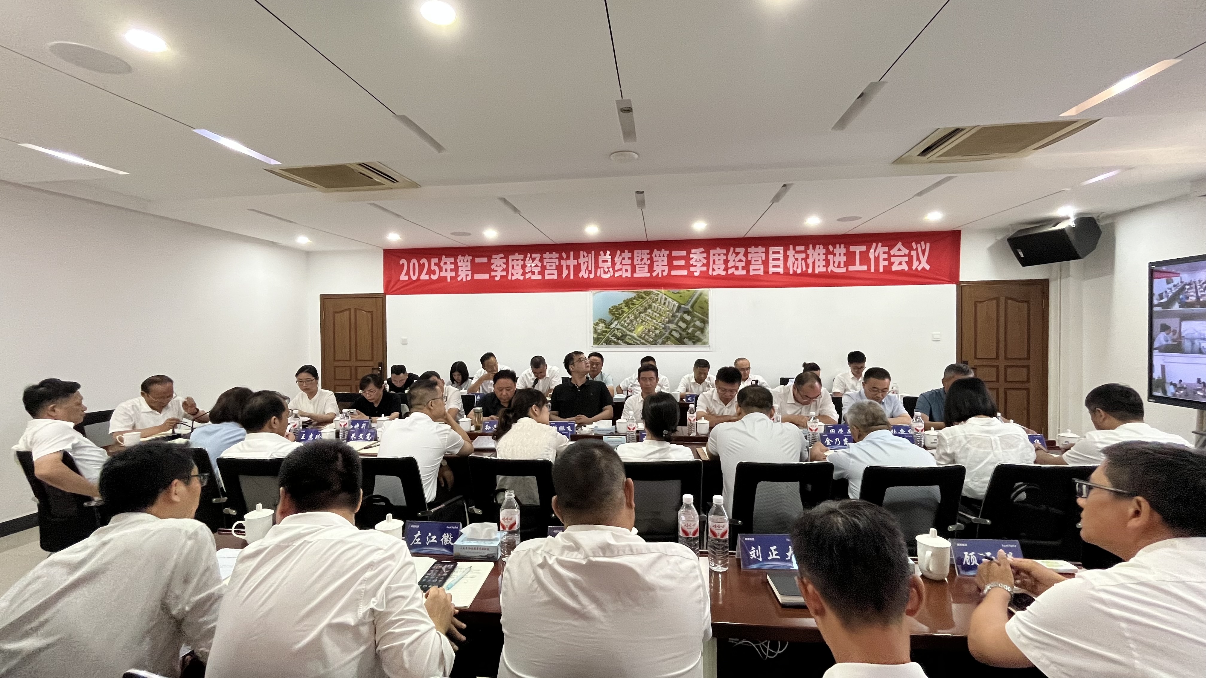 随后,会议宣读集团组织架构及人员任命调整。人事行政中心针对集团经营、集团管理、相关业务板块薪资调整及2025年上半年度绩效考评情况进行现场汇报;工程管理中心通报在建项目安全文明施工、工程质量存在的问题,并汇报产品设计与研发、保障质量与口碑、优化成本与利润空间、驱动技术创新与数字化转型等方面的工作情况;财务管理中心分享集团及各业务板块会计核算、财务管理、全面预算等情况,并据此对各业务板块经营情况作分析与建议。